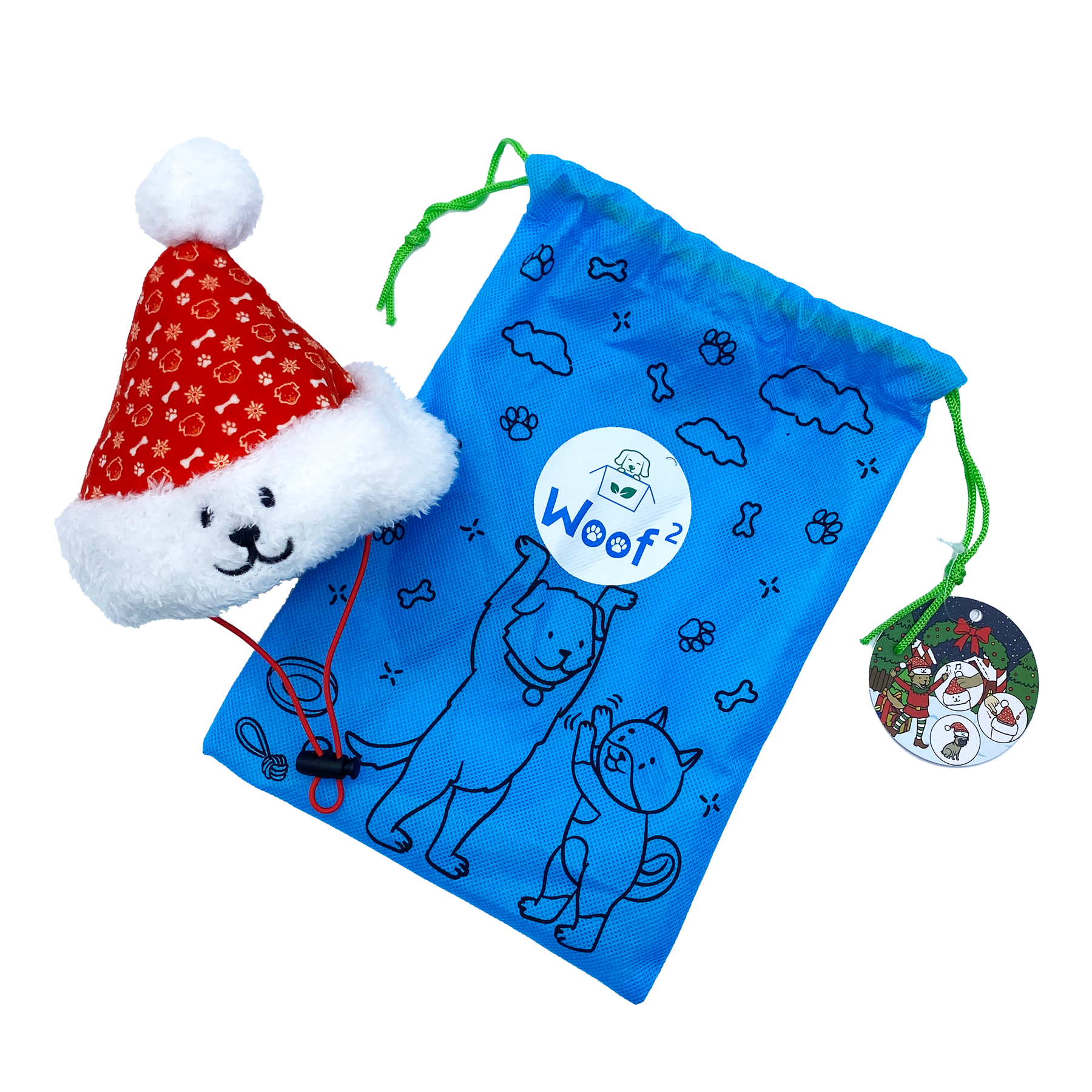 Woof² | Christmas Santa 8% OFF Bundle [Christmas Santa Hat + Christmas Stocking Soft Plush Pet Toys]