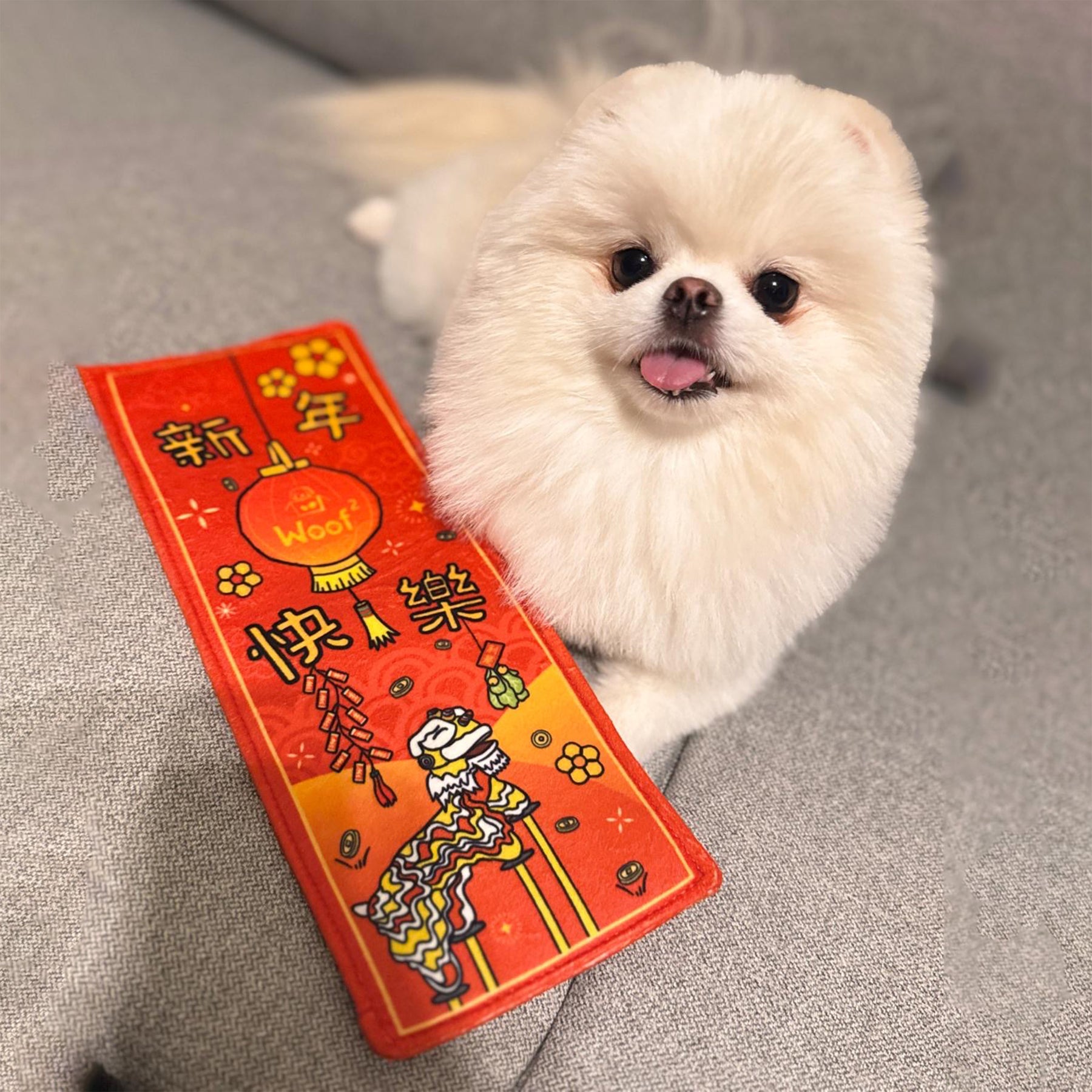 • 一款可愛的卡通揮春玩具,裏你和寵物一起慶祝中國農曆新年。