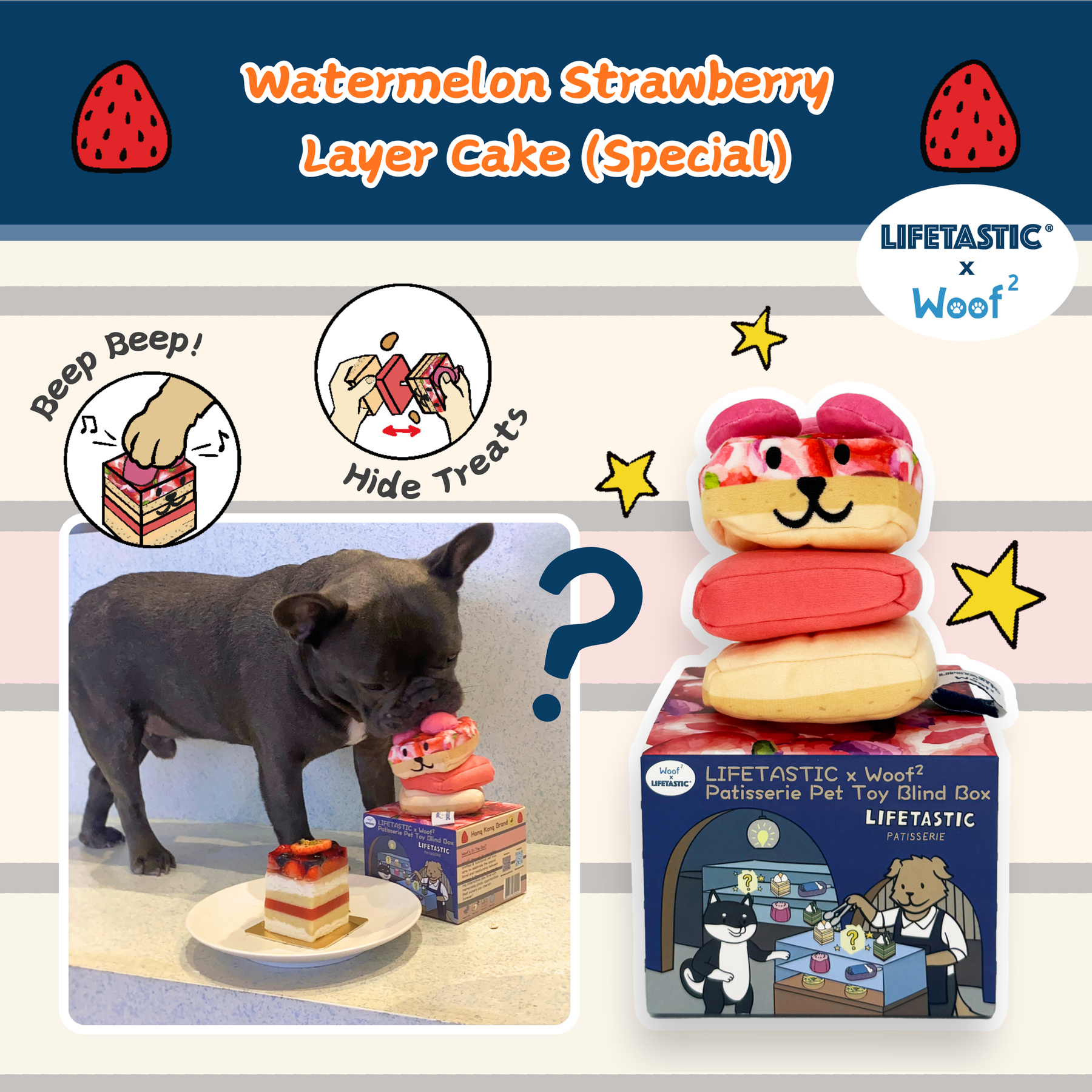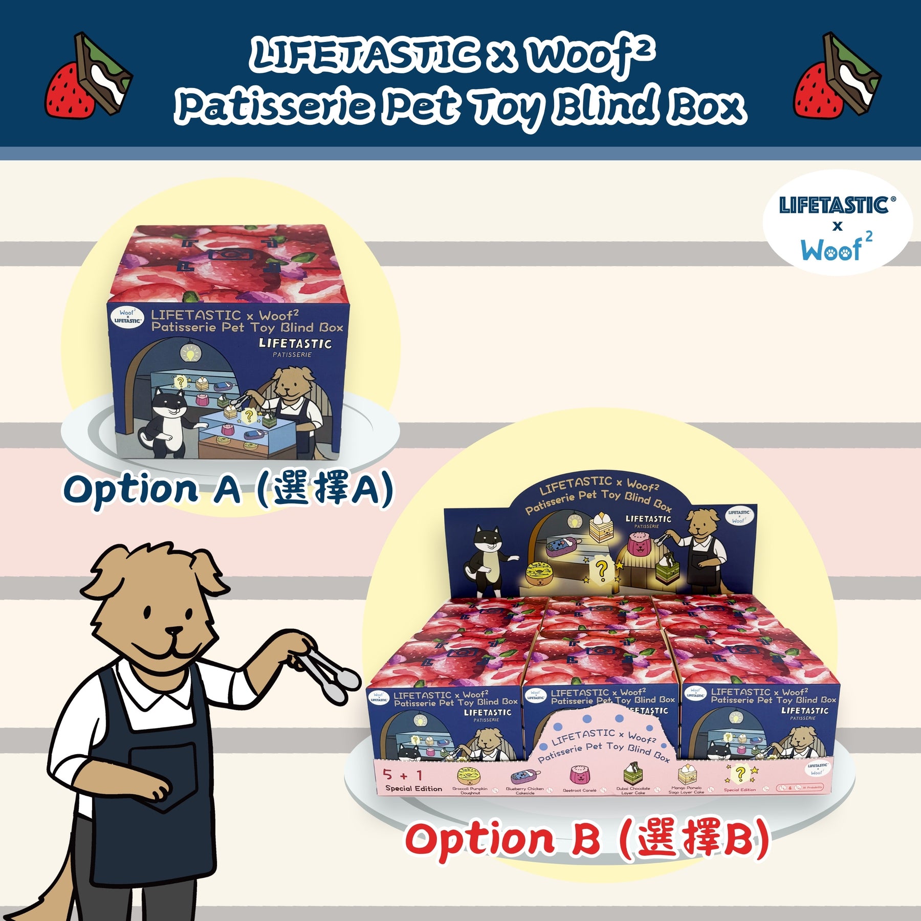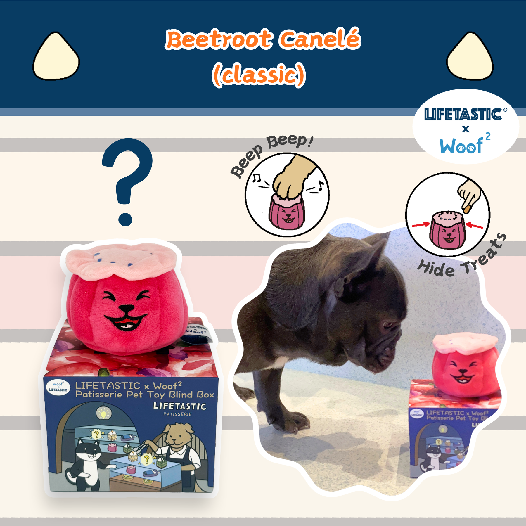 • 每個盲盒隨機包含一款「法式糕點」系列驚喜玩具: