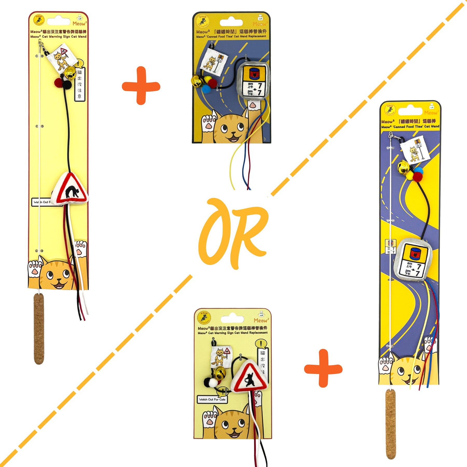 尺寸: • Meow² | 「貓岀沒」注意警告牌逗貓棒:47厘米 x 5厘米 x 2厘米 • Meow² | 「罐罐時間」逗貓棒:47厘米 x 5厘米 x 3厘米 • Meow² | 「貓岀沒」注意警告牌逗貓棒替換件:38厘米 x 5厘米 x 2厘米 • Meow² | 「罐罐時間」逗貓棒替換件:38厘米 x 5厘米 x 3厘米
